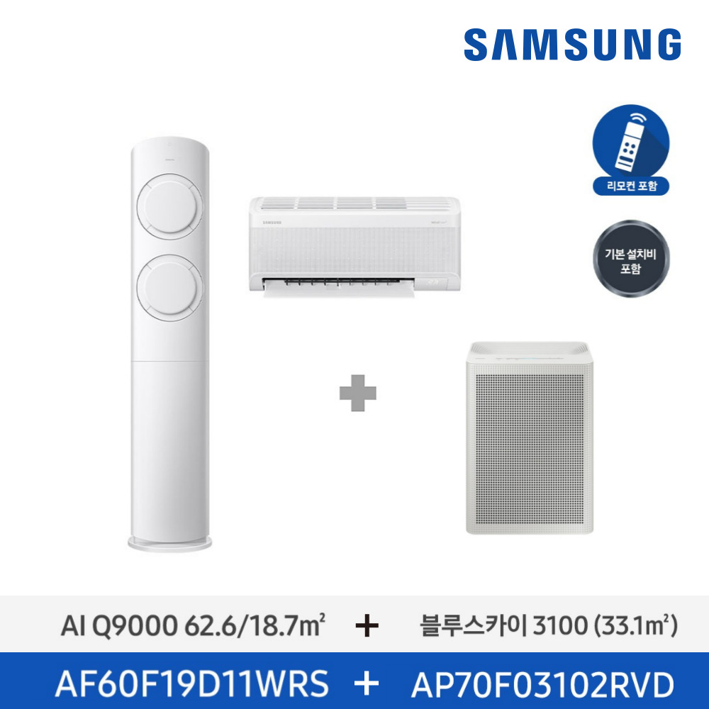 [태양_삼성] Q9000 유풍 홈멀티 에어컨(19평+6평형) + 10평형 공기청정기 AF60F19D11WRS- 납부액(월)
