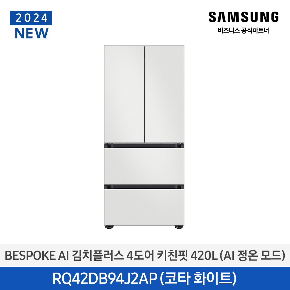 [태양_삼성] 비스포크 AI 김치플러스 4도어 키친핏 김치냉장고 420L / 코타화이트 RQ42DB94J2AP01- 납부액(월)